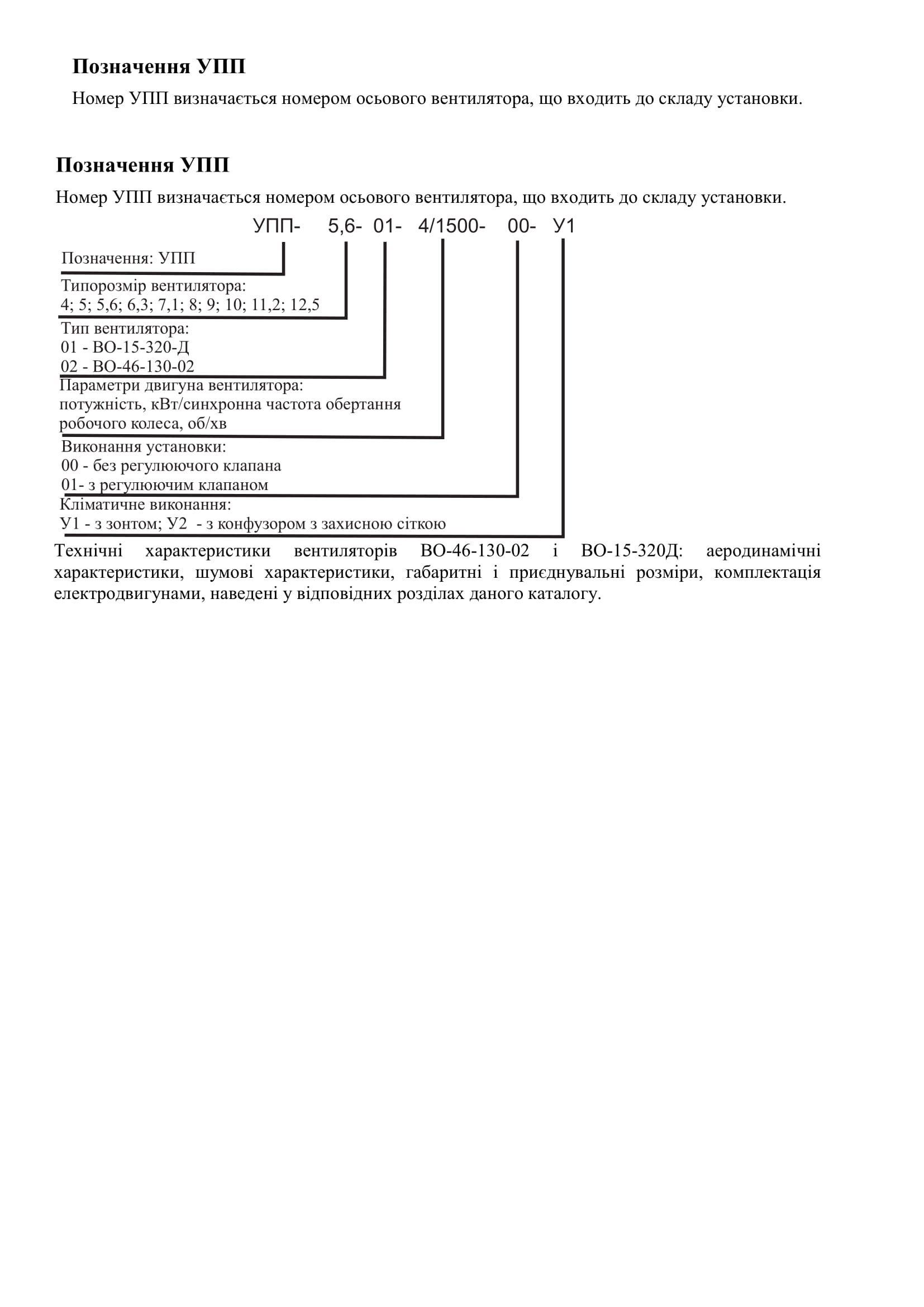 Установка підпору повітря УПП (рис.1.162) складається з осьового вентилятора з вертикальною віссю обертання ВО-46-130-02 або ВО-15-320Д, клапана зворотнього, стакана, зонта (при встановленні на покрівлі) або конфузора із захисною сіткою (при встановленні на технічному поверсі).